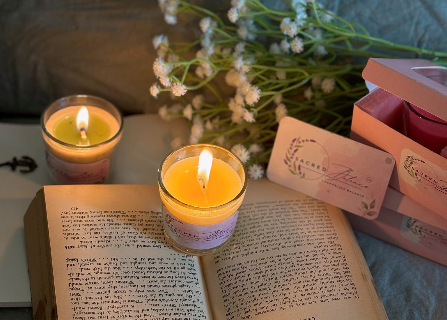 Sacred Balance exists at the intersection of aroma, art, and awareness. Every candle is hand-poured using clean-burning soy wax, lead-free wicks,and high-grade aroma oils. Just a quiet, meaningful presence in a jar.